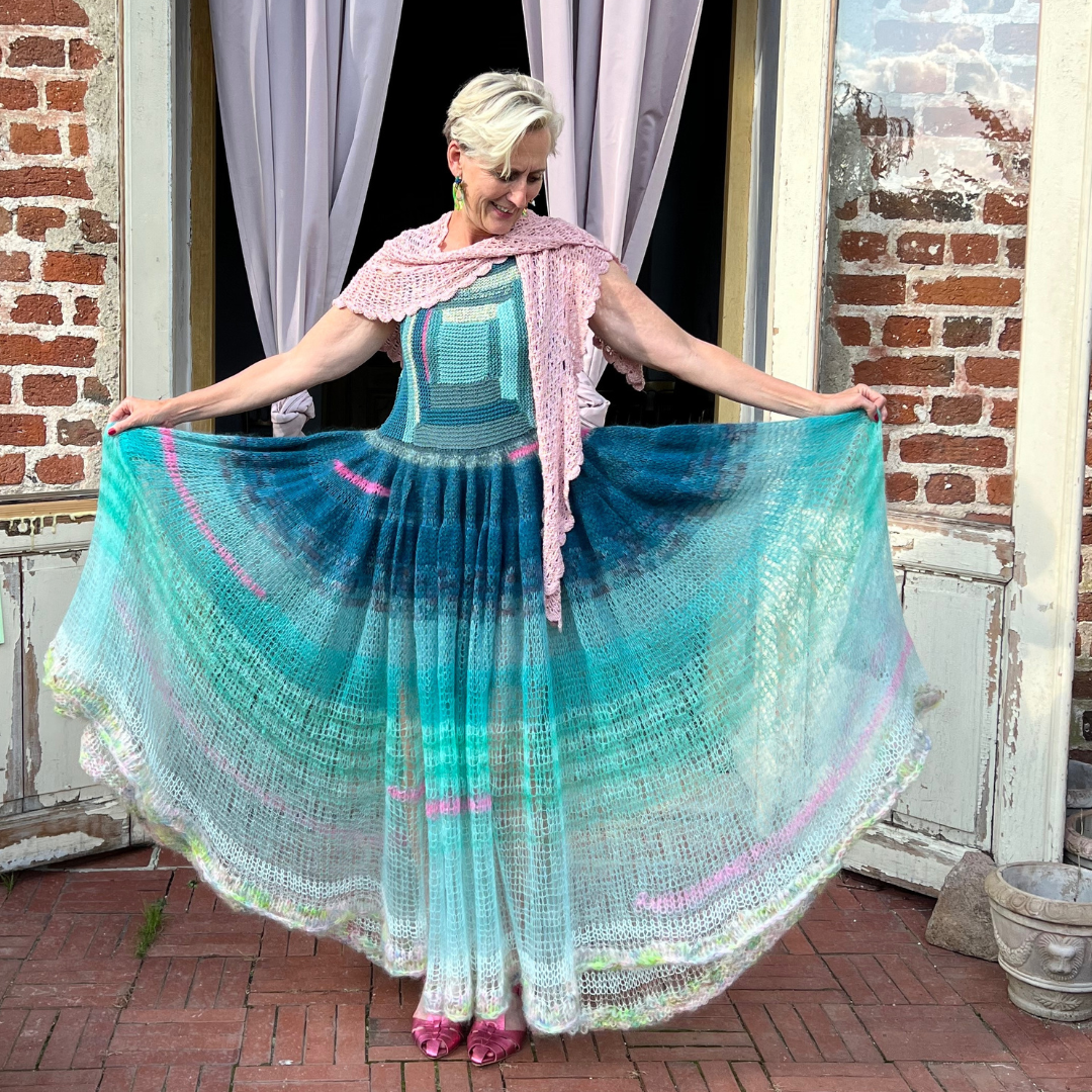 Dette elegante sjal hækles i det blødeste Flamé af hør og viskose. Det har et meget smukt fald, ligger godt på skuldrene og garnet givet det et elegant blankt skær. Sjalet er hæklet i 2 trin. En grundform og et bredt flæsestykke med en afsluttende kant hele vejen rundt. Læs mere om Flamé garnet her.
