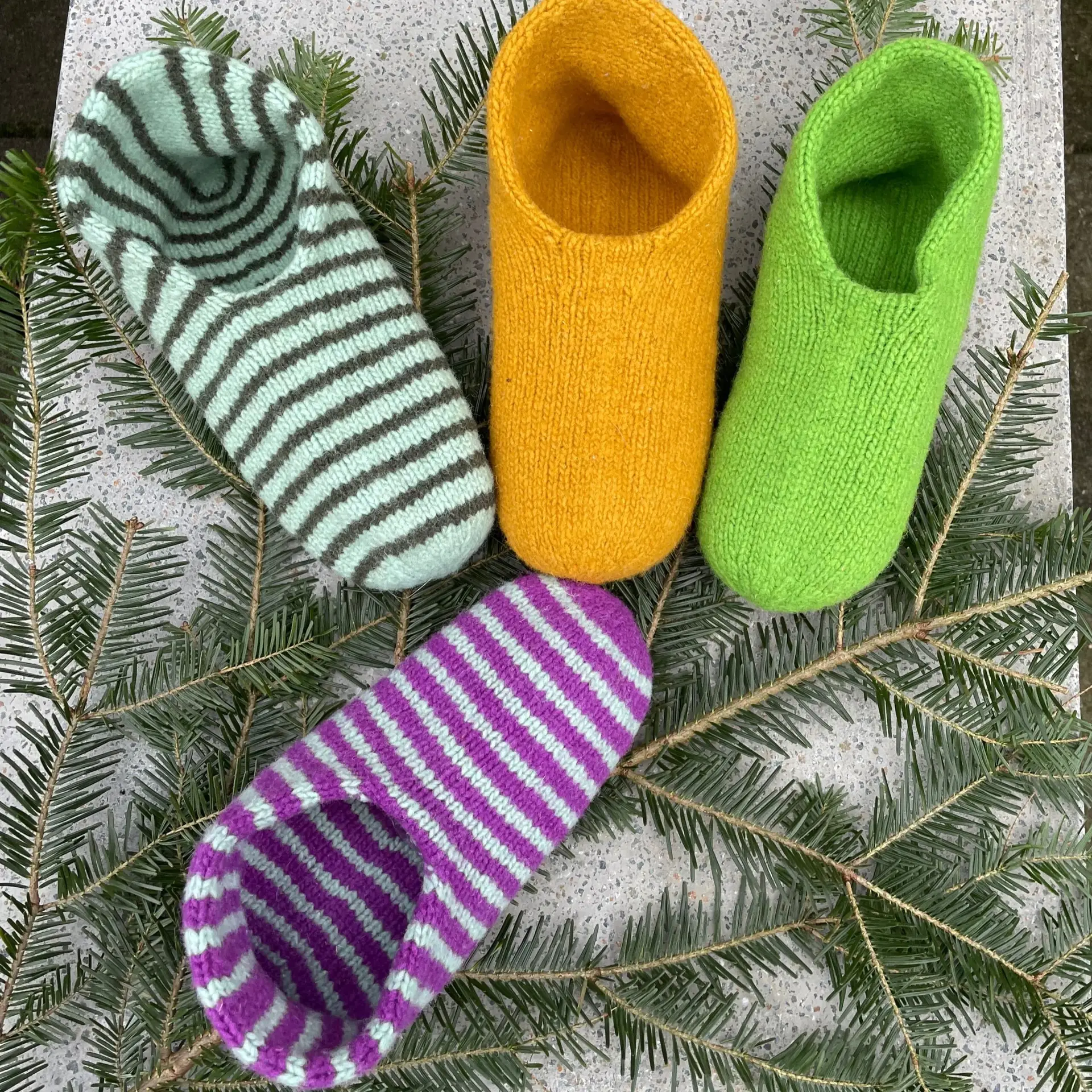 Futterne strikkes fra hælkappen og frem mod tåen. Hælkappen strikkes med en lille forhøjning for at give en bedre pasform. Når skoåbningen er strikket, deles arbejdet, så der strikkes en indersko og en ydre sko. Husk at hæfte enderne undervejs, da det ikke er muligt når tåen er strikket færdigt. Futterne filtes i vaskemaskinen på 40 grader og krymper i vask. Efter vask, foldes de ind i hinanden og formes, mens de stadig er våde. Man kan selv bestemme hvor meget man ønsker at de skal filte. Jo mere man vasker dem, jo mere filtet bliver de. Det betyder også at de bliver mindre og lidt mindre bløde.