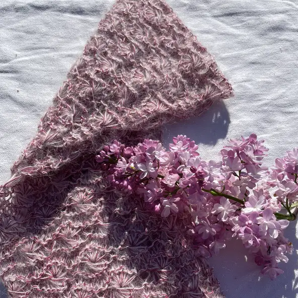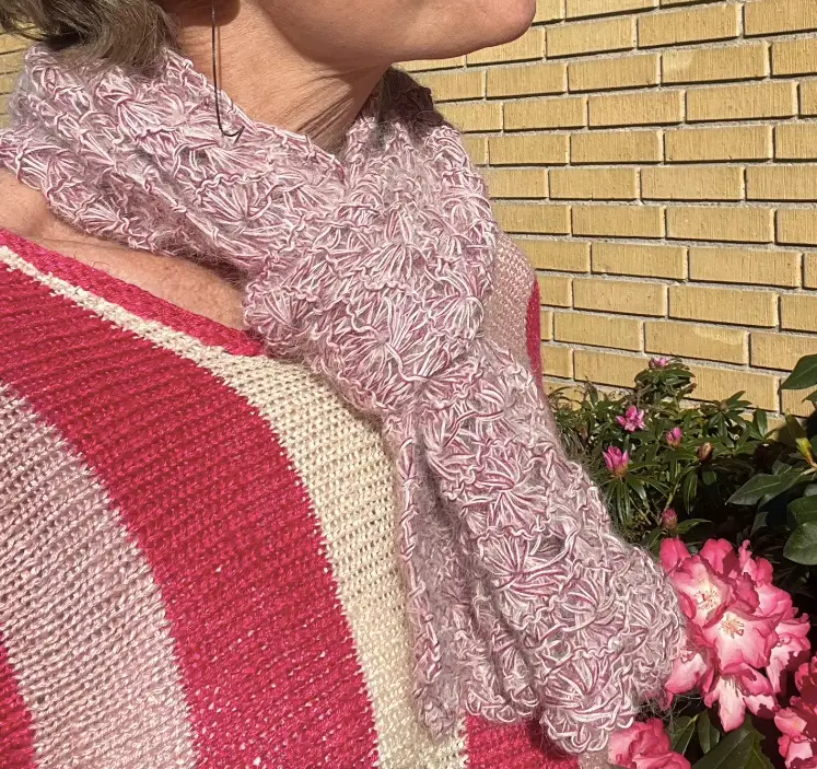 Modellen på billederne er et scarf, strikket i Cotton Candy i farven Violet.